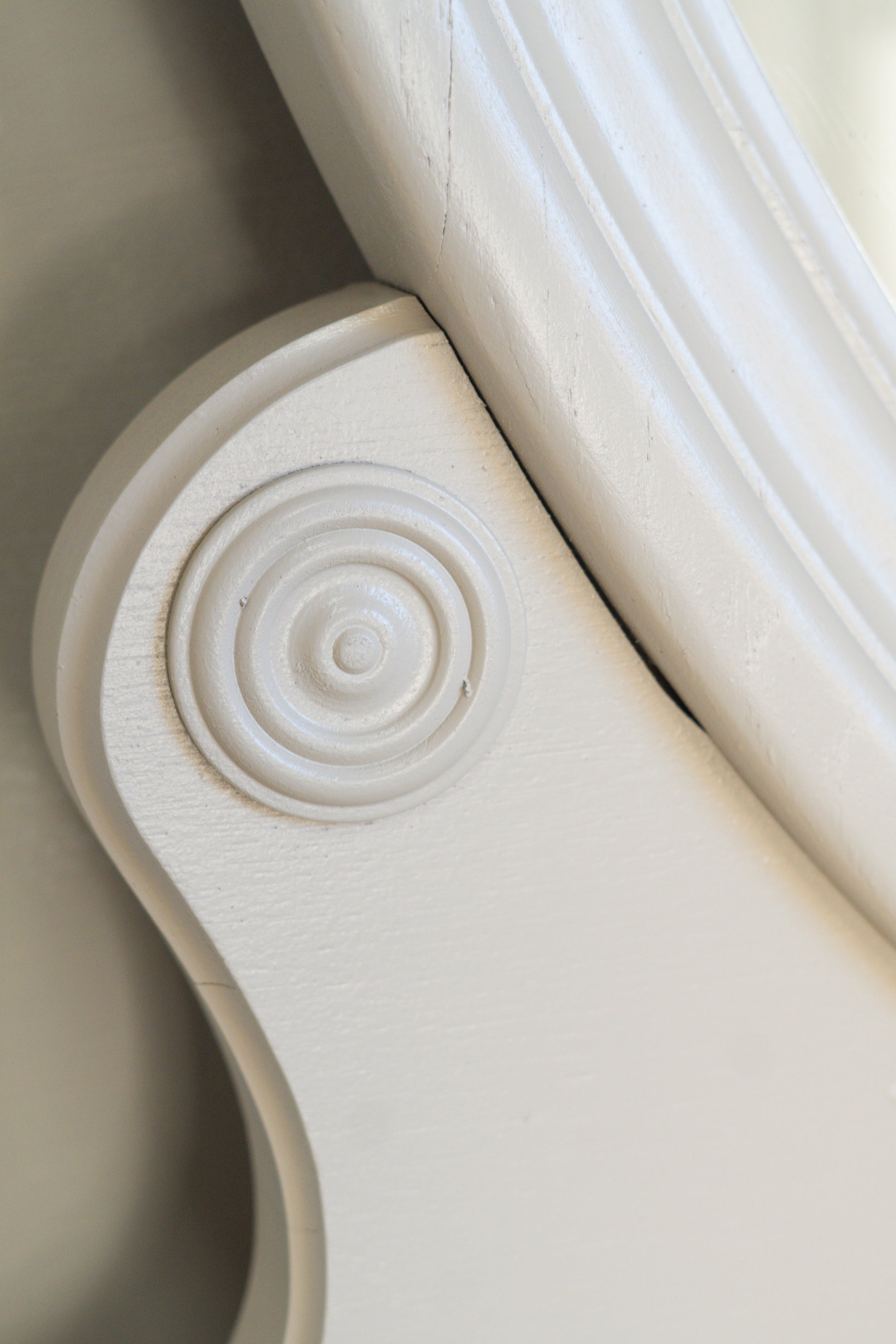 Oval mirror: 41” H (with decorative piece), 37” x 26”